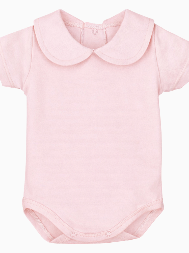 This short-sleeved bodysuit is designed to be worn with bloomers, pants, or overalls. Its versatile nude color easily pairs with a wide range of clothing, creating elegant and modern outfits for your little girl.