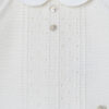 El jersey de lana crudo se distingue por su cuello redondo blanco elegante, sus detalles delicados trabajados en la parte delantera y sus dos botones de nácar decorativos, que aportan un toque precioso al conjunto de su bebé. Su tapeta de botones en la espalda facilita la tarea de vestirle, a la vez que preserva la comodidad y la libertad de movimiento de su hijo, para unos días tranquilos y elegantes.