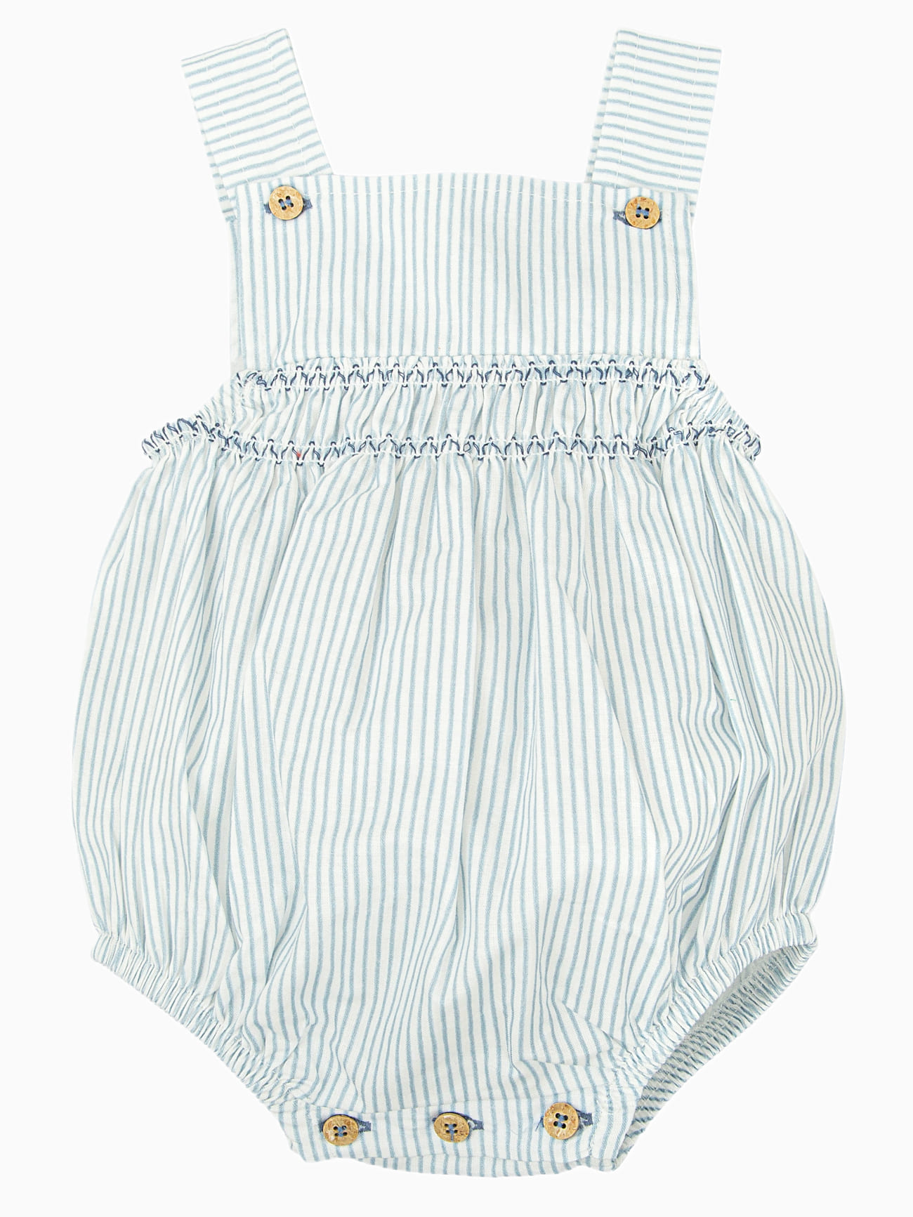 Barboteuse à rayures et détails froncés – Bleu/blanc