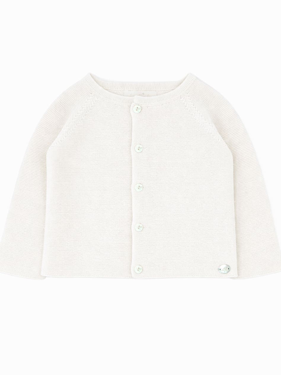 Pour un ensemble coordonné et raffiné, ce cardigan blanc peut être assorti aux Chaussons naissance en point mousse – Blanc, formant ainsi un duo élégant pour les premières sorties et les moments cocooning.