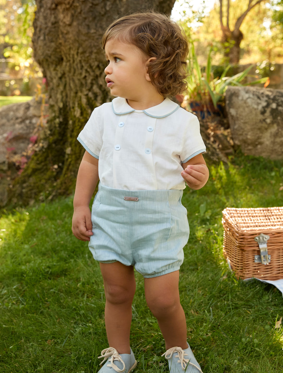 Cet ensemble est idéal pour composer une tenue élégante pour petit garçon, que ce soit pour une cérémonie, un événement familial ou une promenade habillée.