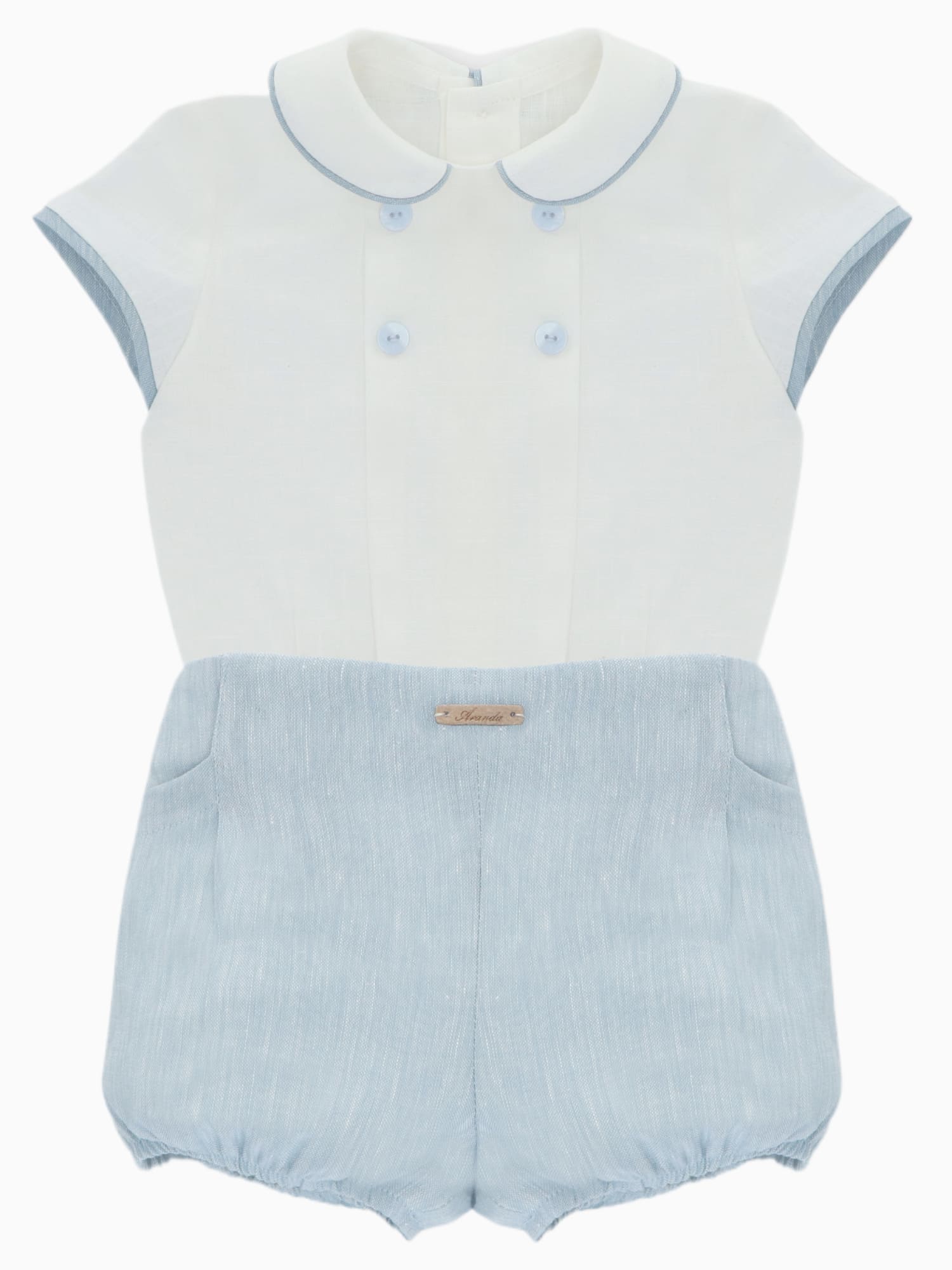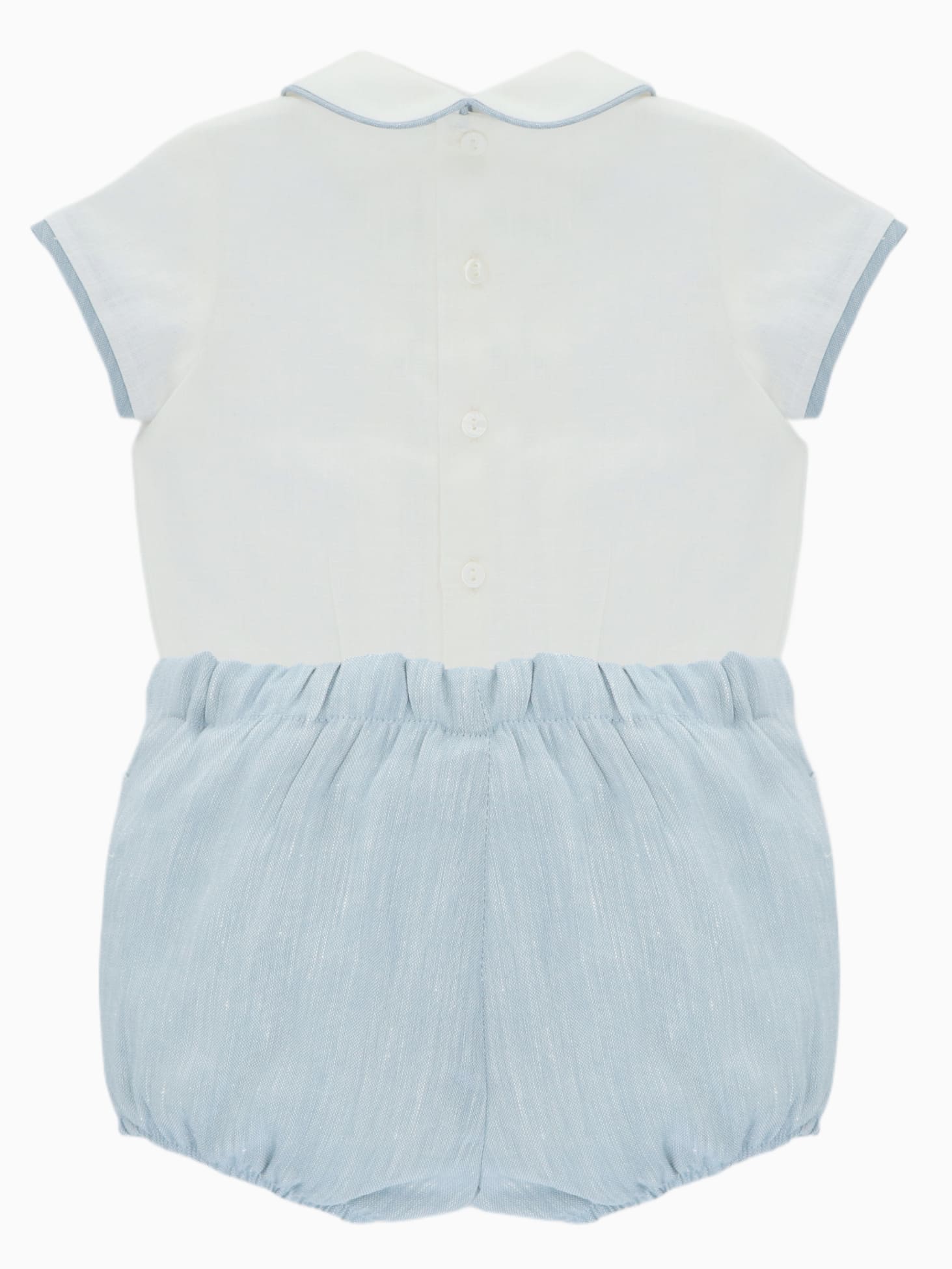 Notre ensemble bébé blouse à col et bloomer bleu est une pièce forte du vestiaire des tout-petits. Élégant, confortable et ingénieux, il reflète parfaitement l’univers raffiné de Voyage de la Baleine et accompagne bébé avec style dans ses premiers moments importants.