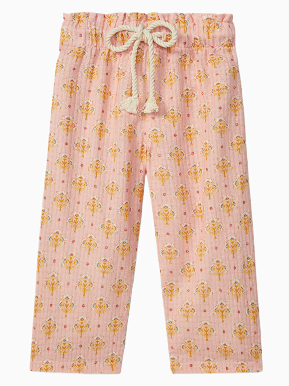 Réalisée dans le même tissu que notre Blouse fille à imprimé floral – Rose, ce pantalon permet de composer une silhouette coordonnée, tout en conservant une grande liberté d’association avec d’autres pièces.