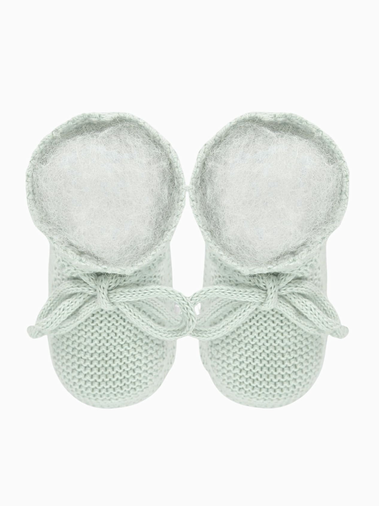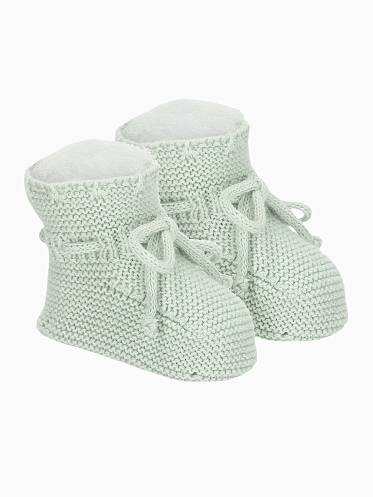 Les chaussons en point mousse vert pâle complètent délicatement l’ensemble. Conçus en 100 % coton, ils enveloppent les petits pieds avec douceur et légèreté.